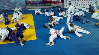 Judoleiri Murmansk 2017 3.-7.1.2017 Herätys tiistai-aamuna 3.1.2017 klo 4.30, aamutoimet ja matka kohti Murmanskia alkaa. Ensimmäinen etappi Vihannista Ouluun tehdään henkilöautolla, bussi lähtee Oulusta klo 6.00 kohti Rovaniemeä. Oulun linja-autoasemalla lähtijöitä oli meidän lisäksi kymmenkunta judokaa Oulun Judokerhosta. Ensimmäinen pysähdys oli heti Haukiputaalla, mistä otettiin kyytiin sujuvasti venäjää puhuva joukkueemme judoka. Havaitsimme matkan aikana venäjän kielen taidon olevan todella tärkeää matkustettaessa Venäjälle. Seuraavaksi Kemistä poimittiin kyytiin kaksi judoleiriläistä ja matka jatkui kohti Rovaniemeä. Reissun ajankohta oli keskellä parhaillaan Suomessa etevää influenssa-aaltoa ja muutama judoka joutuikin perumaan reissun sairastuttuaan. Reissun aikana flunssaan sairastuneita ei ollut mutta mm. tämänkin varalta mukana tällä pohjoisen judojoukkueella oli lääkäri. Rovaniemellä pysähdyimme Erottajan Shellillä, josta kolmisenkymmentä iloista koyamalaisia hyppäsi kyytiimme. Rovaniemeltä matkasimme Sodankylään, poimimme sieltä mukaan viimeisen reissuun lähtijän. Vaikka matka oli pitkä ja lähtö aikainen, aika bussissa meni yllättävän nopeasti. Reissueväinä ruisleivän lisäksi meillä oli hyvää seuraa, tapahtumia ja pysähdyksiä. Bussimatka Oulusta Murmanskiin kesti 14 tuntia. Ennen valtioiden välistä rajan ylitystä pysähdyimme Ivaloon. Ivalossa söimme lämpimän päivällisen ja se oli meistä todella hyvää. Kävimme myös kaupassa, josta tärkeimpänä ostoksena olivat vesipullot. Venäjällä ei suositella hanavettä juotavaksi, joten mikään määrä vesipulloja reissueväänä ei ollut meille liikaa. Pääsimme jouhevasti läpi Raja-Joosepin tullista, aikaa meni vain tunti ja vartti. Ensimmäisenä esitimme passit Suomen tulliasemalla ja tullivirkailijat tarkastivat sinä aikana linja-automme. Seuraavaksi siirryimme Venäjän tulliin, jossa haasteena oli täyttää maahantulokortti oikein ja vieläpä kahtena identtisenä kappaleena. Osalla reissussa olleilla oli tästä aiempaa kokemusta useista edeltäneistä Venäjän kisa- ja leirireissuista, hyvä niin ja kiitos heille tämän kortin täyttämisen etukäteisohjeistuksesta. Reissulaisia oli nyt mukana 40 henkilöä, joista osa oli ensimmäistä kertaa mukana, kuten mekin. Pienestä hässäkästä huolimatta saimme maahantulokortit kunnialla täytettyä ja matka kohti määränpäätä jatkui. Ja mobiilidata off-lineen. Pääsimme läpi ensimmäisestä Venäjän tullista, jonka jälkeen tuli vielä kolme tullipysäytystä, joissa tarkistettiin joko passit tai henkilömäärä bussin kyydissä. Vihdoinkin perillä Murmanskissa tiistai-iltana 3.1.2017 n. klo 22.00 Suomen aikaa! Venäjän aikaa siis n. klo 21.00. Ja seuraavaksi oli hotellien säätö. Osa porukasta majoittui Park Inn -hotellissa, joka on yksi hienoimmista hotelleista Murmanskissa ja osa porukasta majoittui Moryak -hotellissa, joka on myös hyvä majoitusvaihtoehto. Molemmat hotellit olivat reissuilla jo aiemmin käyneille tuttuja. Ennen reissua kaikille oli lähetetty yleisviestinä ohjeistus ötököistä, lutikoista ja torakoista, joita Venäjän matkaaja saattaa reissullaan kohdata. Ohjeistus oli aiheuttanut aikamoista hysteriaa etenkin nuorison keskuudessa, ehkä myös hieman vanhempienkin. Tämä näkyi muun muassa lutikoita vastaan varustautumisena; mukana oli makuupusseja, jätesäkkejä ja omia lakanoita. Kaikkien onneksi emme kohdanneet ötököitä ja kaikki olivat tyytyväisiä majoitukseensa. Ensimmäinen leiripäivä 4.1.2017 Aamupalan jälkeen lähdimme bussillamme kohti Murmanskin uutta 2015 valmistunutta liikuntahallia. Matkaa hotellilta treenipaikalle oli noin vartin matka. Treenipaikalle päästyämme meille selvisi, ettei pientenryhmässä ollut venäläistä treenien vetäjää. Tämä tuli joukkueemme vetäjille täytenä yllätyksenä. Tai no, ei aivan täytenä yllätyksenä, sillä aikaisempien reissujen myötä joukkueemme vetäjät olivat oppineet, ettei oikein mikään mene täällä niin kuin alun perin on suunniteltu. Kaikki kyllä Venäjällä toimii, kunhan tarpeeksi säädetään. Harjoitukset pidettin yhdessä suomalaisten koutsien kanssa. Pakkasta Murmanskissa oli noin -25 – 35 astetta ja mereltä puhaltava kova kosteailmainen tuuli teki sääolosuhteista todella kylmän tuntuisen meille suomalaisille, vaikka olemmekin tottuneet koviin pakkaslukemiin. Täällä kylmänkokemus on aivan toista luokkaa. Paksuista toppavaatteista huolimatta kylmä viima ja pakkanen purivat meitä aivan lyhyilläkin siirtymillä. Kilometrin kävelymatka treenipaikalta lounaspaikalle tuntui todella kylmältä ja pitkältä, kun se piti taittaa Pohjois-Venäjän jäätävässä ilmastossa. Venäläinen ruoka mm. kuumine borssi-keittoineen siinä pakkassäässä oli todella hyvää ja maistui porukalle. Ihmettelyä judokoiden keskuudessa aiheutti paikallisten kevyt pukeutuminen näillä pakkaslukemilla, näimme paikallisia tekevän töitä ilman hanskoja, lenkkareissa vetämässä lasta pulkassa ja näin edespäin. Illalla kävimme sitten syömässä missäpäs muualla kuin läheisen kauppakeskuksen mäkkärissä, sillä sieltä sai nopeimmin ja varmimmin ruokaa. Toinen leiripäivä 5.1.2017 Tänään oli kevyempi päivä, Suomen joukkueen leiriläiset jättivät iltapäivän harjoitukset väliin. Aamupäivän harjoitusten sekä lounasruokailun jälkeen lähdimme kiertämään bussilla Murmanskia ja kävimme katsomassa paikallisia nähtävyyksiä. Käynti pakkassäässä ja navakassa viimassa Aljosha-patsaalla toi porukalle pientä liikuntaa myös tälle iltapäivälle. Tänäänkin mentiin illalla mäkkäriin syömään, mikä ei meille aikuisille tullut yllätyksenä. No, se mikä uppoaa näille leiriläisille parhaiten, on nyt tärkeintä. Tänään meillä oli myös enemmän aikaa kiertää kauppakeskuksessa ja vaikka ostoksia ei kertynyt paljoakaan, näimme kaikkea er